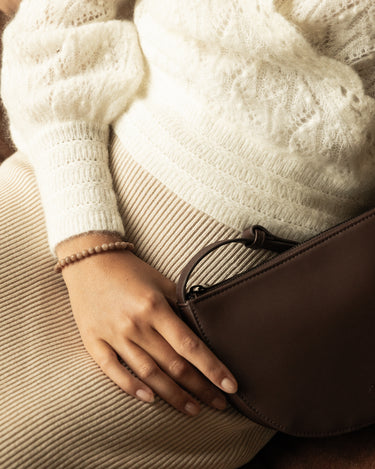 A real eye catcher! The sand bead bracelet, with silver closing. Looking for another colour? What about a bracelet in the colour dark wood, blue sky or moon? The jewellery collection comes in a beautiful linen pouch, which will makes a perfect gift!