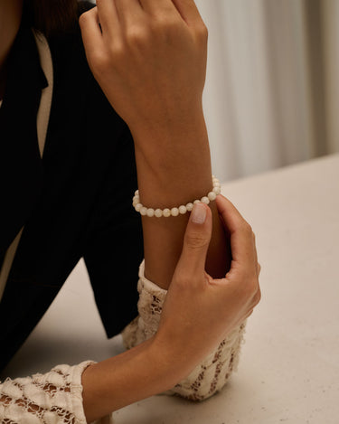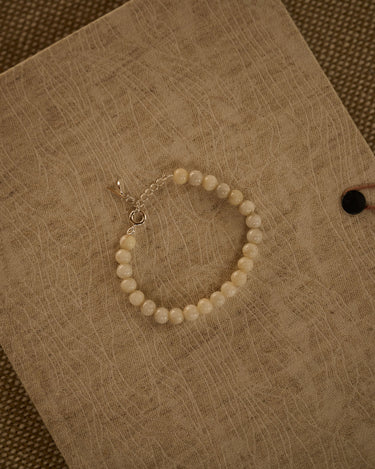 A selentine bead bracelet, with silver closing. The jewellery collection comes in a beautiful linen pouch, a perfect gift!
