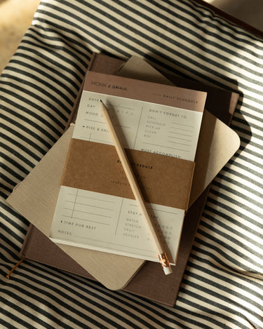 A creation of a minimalistic yet esthetic world filled with products in soft earthy tones and with different textures. Inspired by Japan, nature, fashion and craftmanship in general. A new collection always starts with researching new colour palettes and sourcing for textures. From there on the creative minds are set free to just be inspired by everyday life. In this way Monk & Anna remains exciting and vivid.