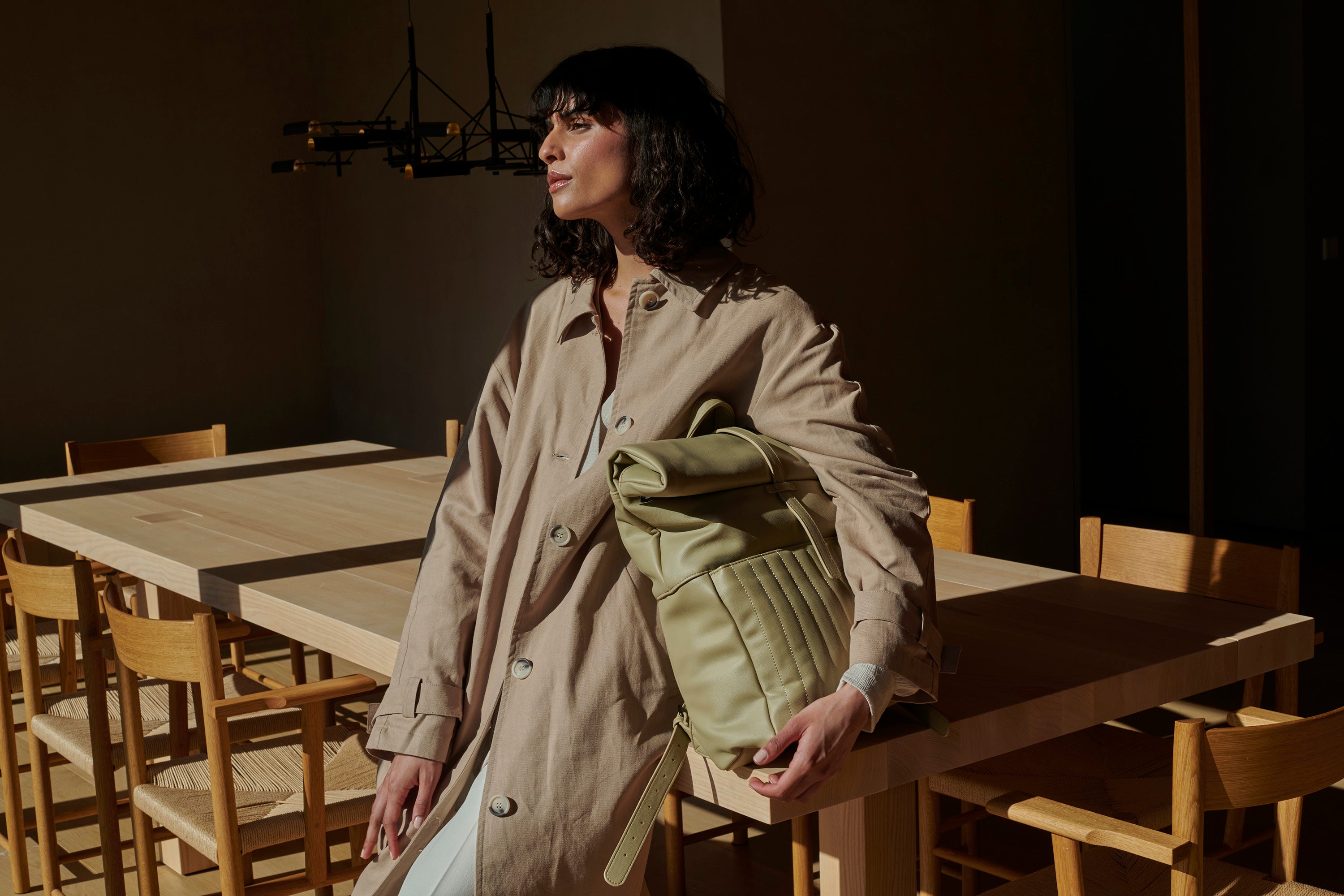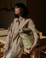 The herb backpack with adjustable shoulder straps. Made of high quality vegan leather and with a black YKK zipper to close the backpack in the top. The backpack has a padded laptop compartment on the inside.
