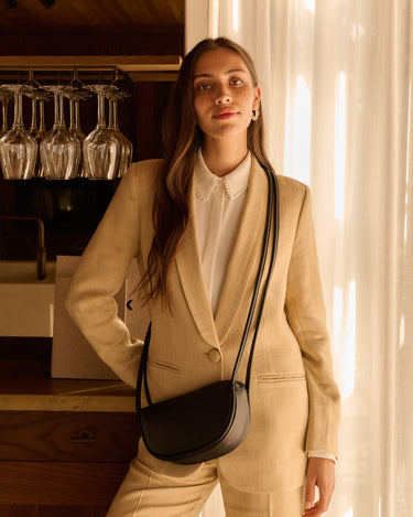 We aim to reduce our footprint in this beautiful world. We made the next step and made this Monk & Anna bag of recycled vegan leather. It’s protected by a semi-transparent dust bag – which can be used again to store the bag when you’re not wearing it. Enjoy!
