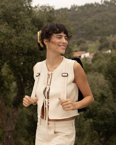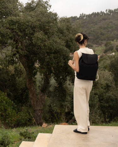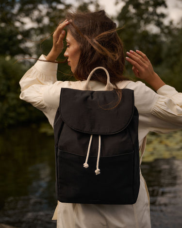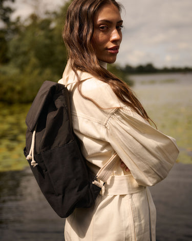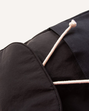 A new and improved backpack, made from crinkled nylon and canvas with a drawstring to secure all your items inside. For adventures, strolls in the city and trips with friends.