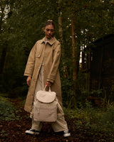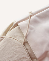 A new and improved backpack, made from crinkled nylon and canvas with a drawstring to secure all your items inside. For adventures, strolls in the city and trips with friends.