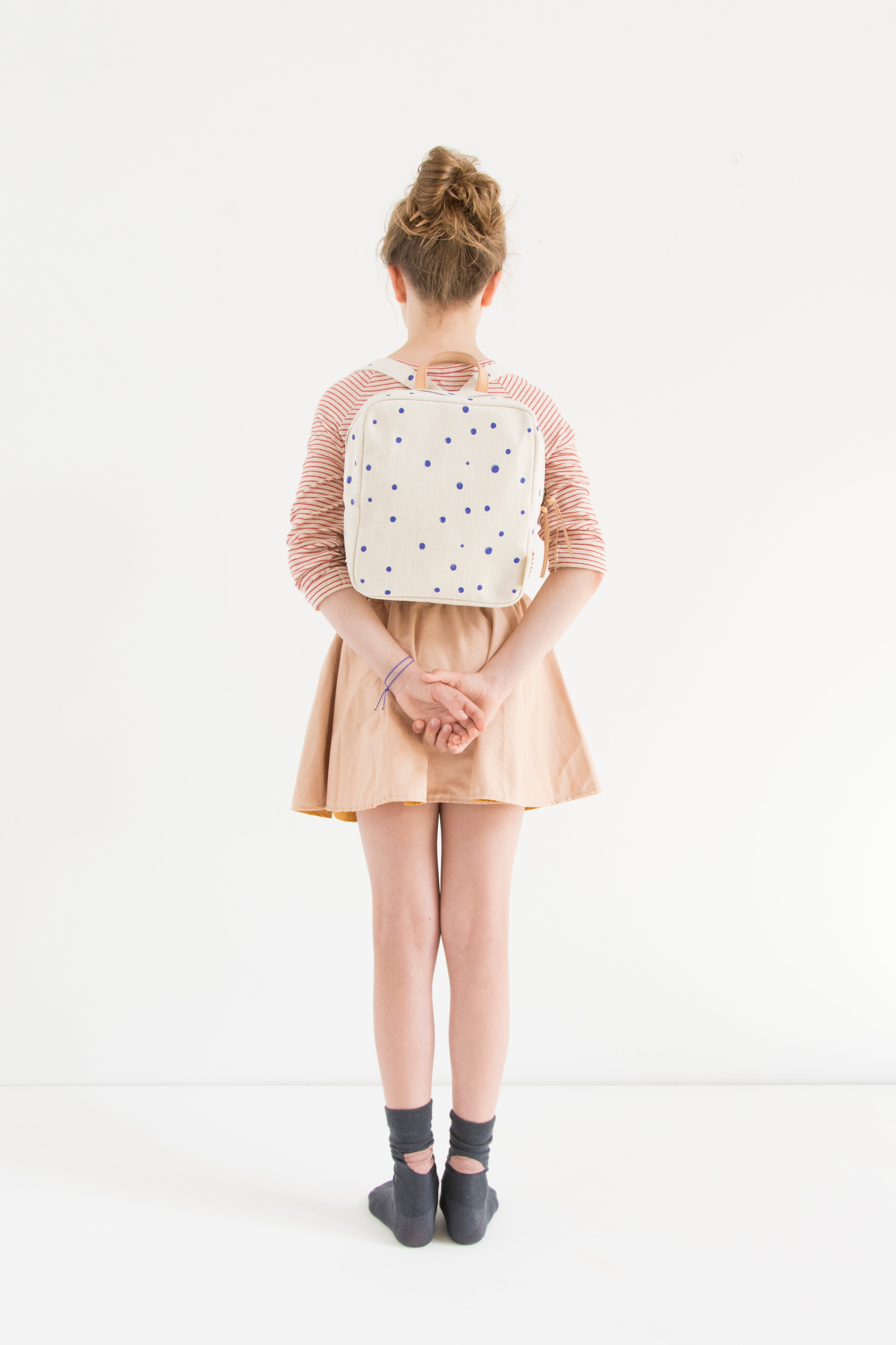 The Kodomo backpack mini, a kids backpack available in different designs and colours, closes with a zipper puller.