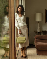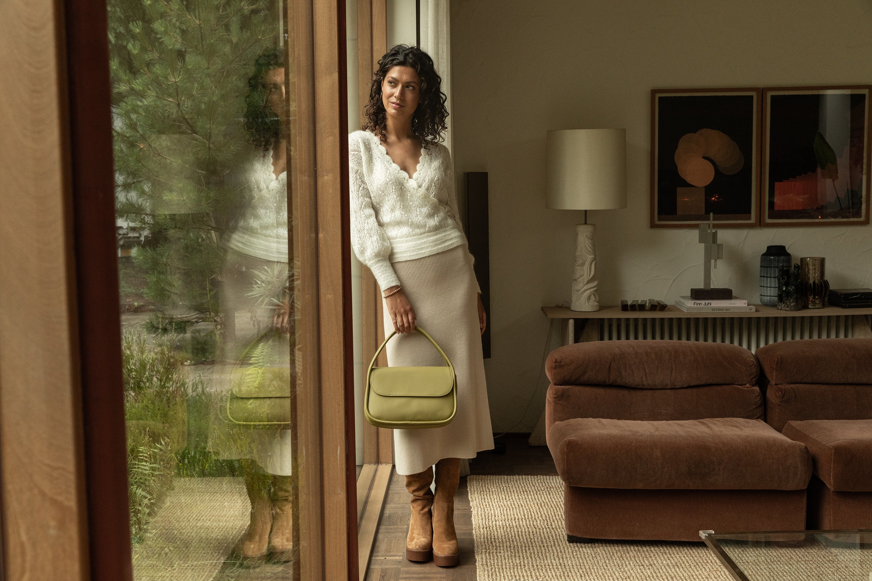 Meet Masaki, a new style hand bag. Masaki is an elegant yet fashionable bag, in the colours of this season. This handbag is perfect to carry around your daily essentials or as your companion during a night out. Made of high quality recycled vegan leather, with a black YKK zipper and a willow coloured lining. This hand bag has two compartments and inside you find an extra pocket to store some small items.