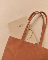 A totebag to bring to the market, a friend's house or for a day in the city. Made from recycled vegan leather with a linen lining.