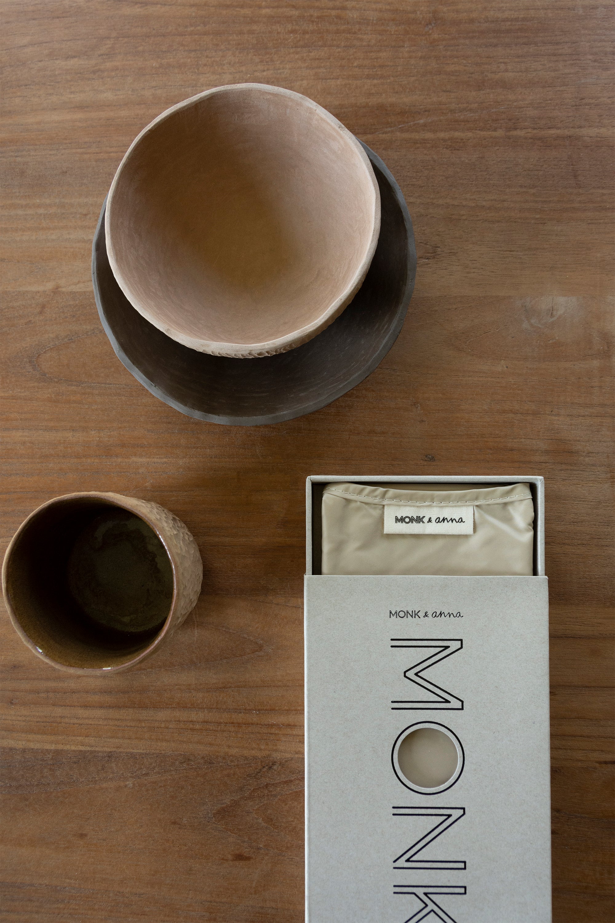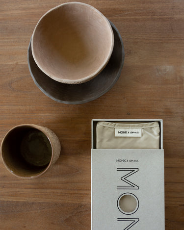 A creation of a minimalistic yet esthetic world filled with products in soft earthy tones and with different textures. Inspired by Japan, nature, fashion and craftmanship in general. A new collection always starts with researching new colour palettes and sourcing for textures. From there on the creative minds are set free to just be inspired by everyday life. In this way Monk & Anna remains exciting and vivid.