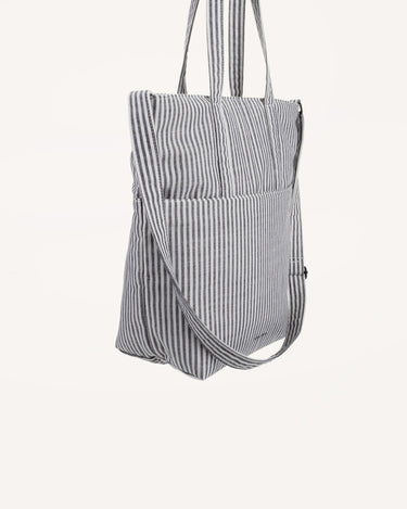 The Nyoko is a shopper made of cotton fabric with an extra pocket on the front that closes with a zipper aswell. It can be worn on your shoulder or as a cross body, because of the adjustable shoulder strap.