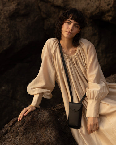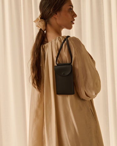 We aim to reduce our footprint in this beautiful world. We made the next step and made this Monk & Anna phone pouch of recycled vegan leather. It’s no longer wrapped in plastic, but protected by a semi-transparent dust bag – which can be used again to store the bag when you’re not wearing it. Enjoy!