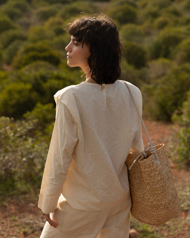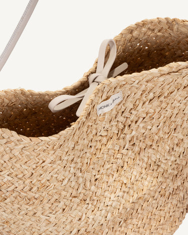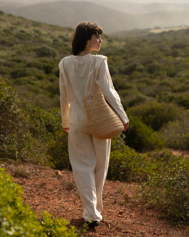 The Sama straw bag in stone is the perfect blend of elegance and functionality. Made with raffia, this chic bag features a round bottom and secure straps to close it, ensuring your essentials stay put. Ideal for a day out or a casual evening, it complements both relaxed and sophisticated outfits.